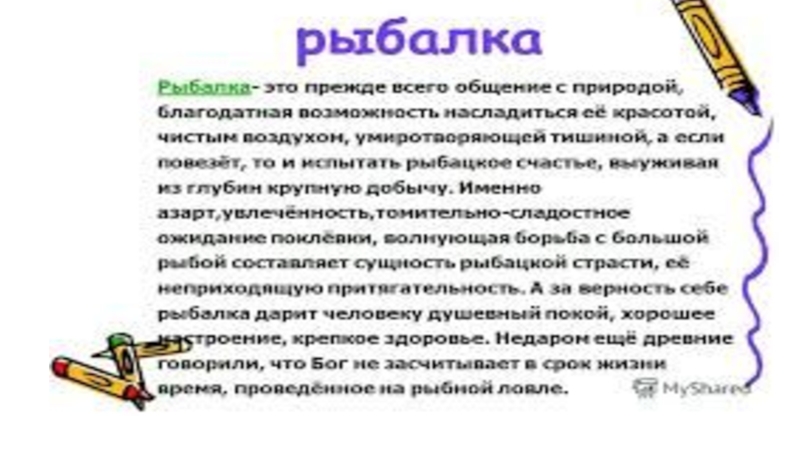 Презентация, доклад по чтению на темуРыбалка(1 класс)