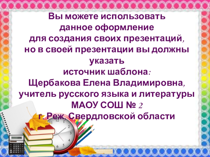 Вы можете использовать данное оформление для создания своих презентаций, но в своей презентации вы должны указать источник