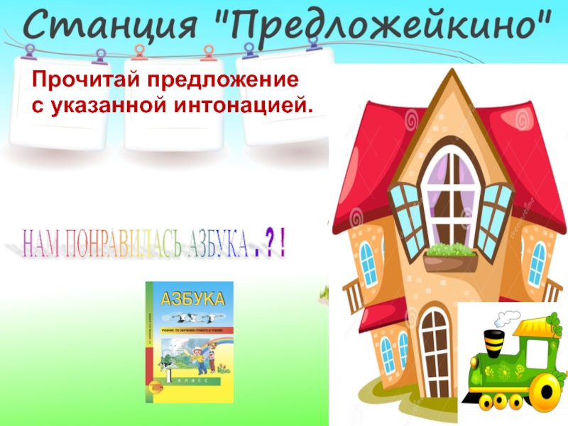 Прочитай предложение с указанной интонацией.      НАМ ПОНРАВИЛАСЬ АЗБУКА . ? !