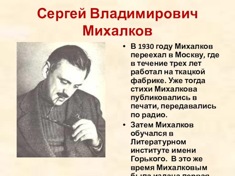 С. В. Михалков родился 13 марта 1913 года в Москве.