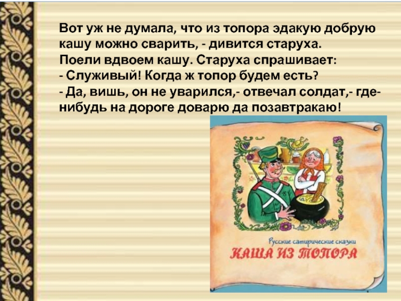 горой, я там был, мёд-пиво пил; сказка – ложь, да в ней намёк…