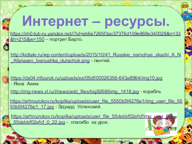 Интернет – ресурсы.