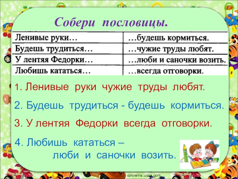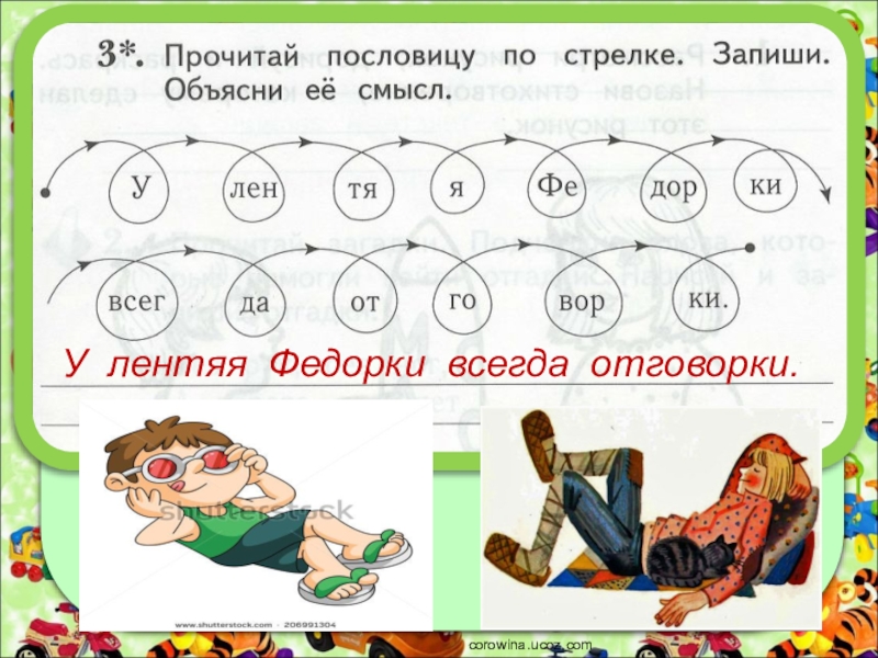3. У лентяя Федорки всегда отговорки.