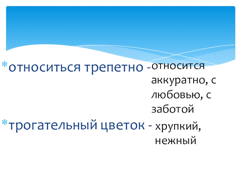 относиться трепетно - трогательный цветок -относится аккуратно, с любовью, с заботойхрупкий, нежный