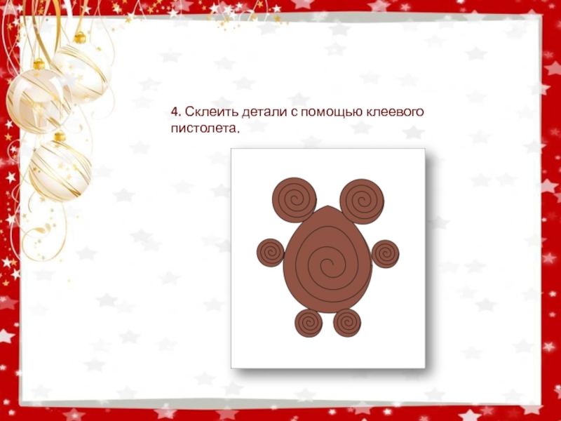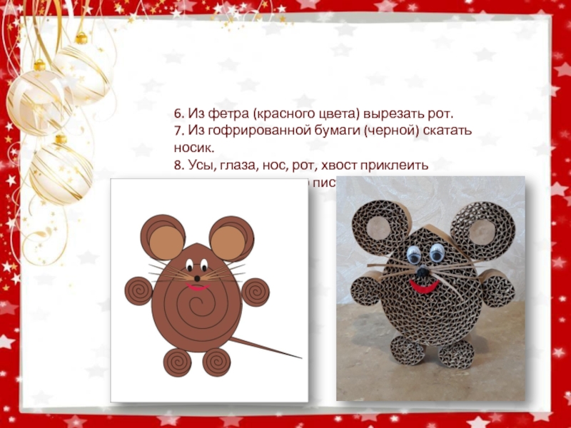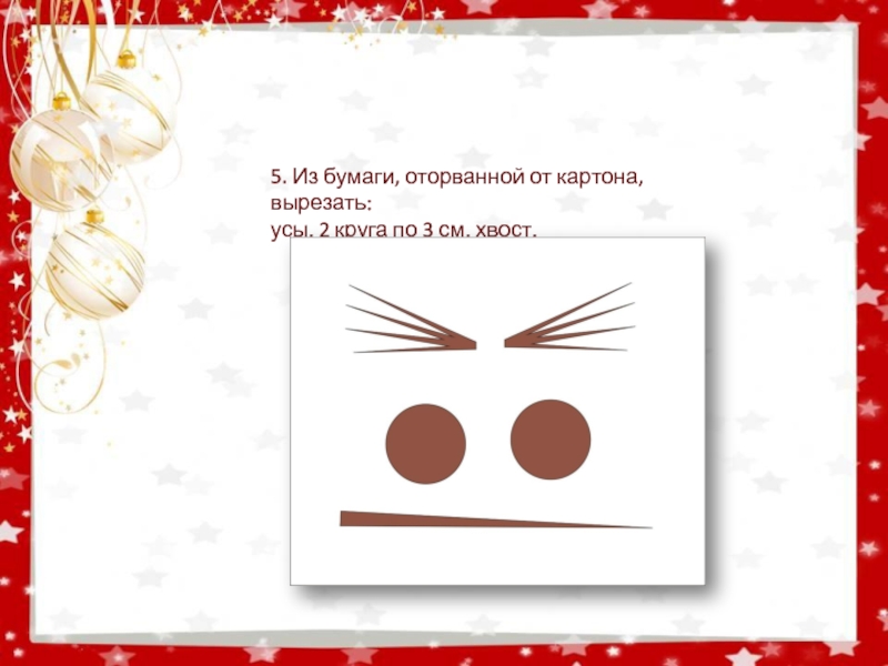 Christmas tree5. Из бумаги, оторванной от картона, вырезать:усы, 2 круга по 3 см, хвост.