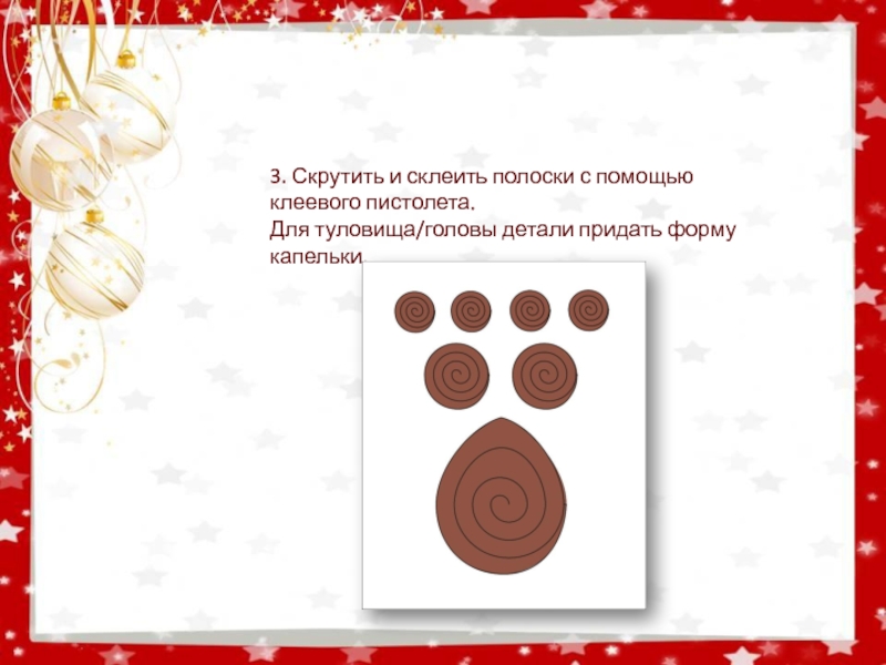 3. Скрутить и склеить полоски с помощью клеевого пистолета. Для туловища/головы детали придать форму капельки.