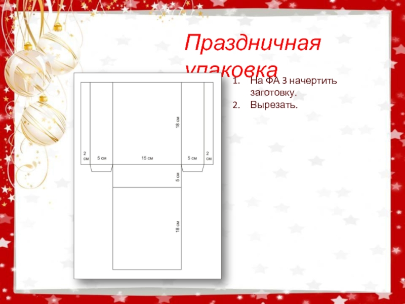 Circle the wordПраздничная упаковкаНа ФА 3 начертить заготовку.Вырезать.