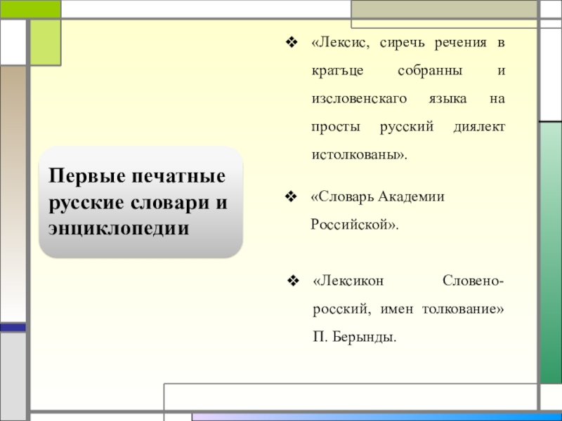 «Лексис, сиречь речения в кратъце собранны и изсловенскаго языка на просты русский диялект истолкованы».
