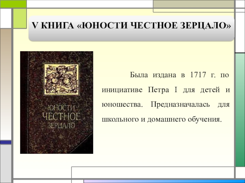 V КНИГА «ЮНОСТИ ЧЕСТНОЕ ЗЕРЦАЛО»