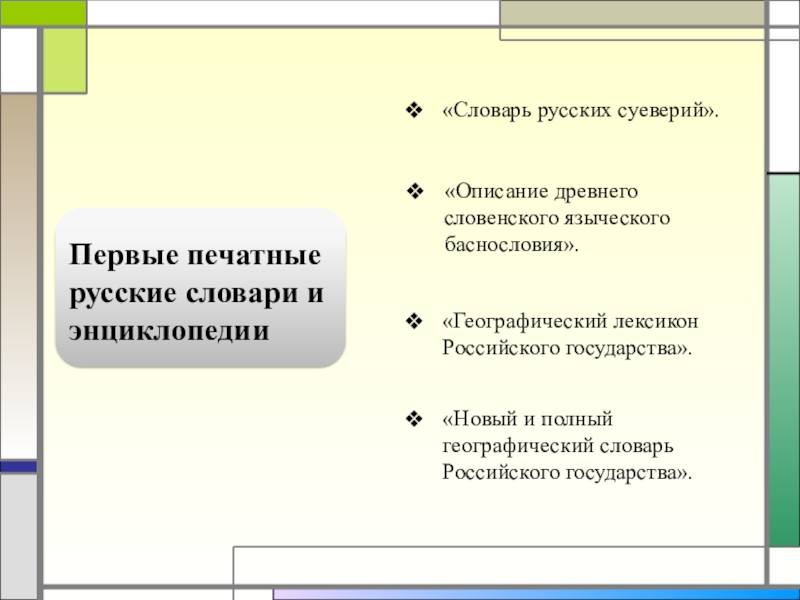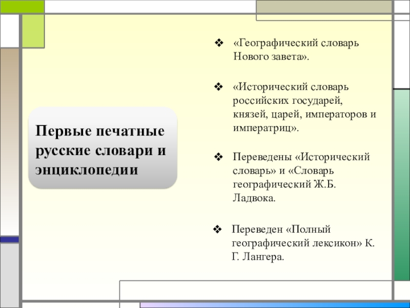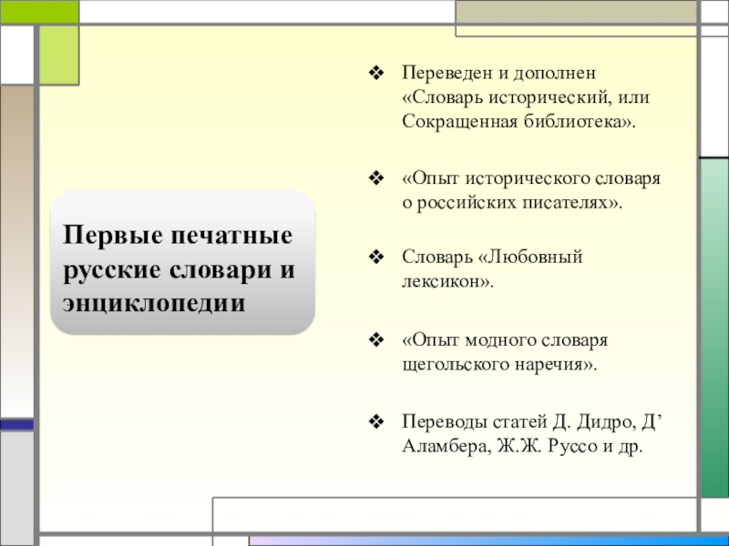 Переведены «Исторический словарь» и «Словарь географический Ж.Б. Ладвока.