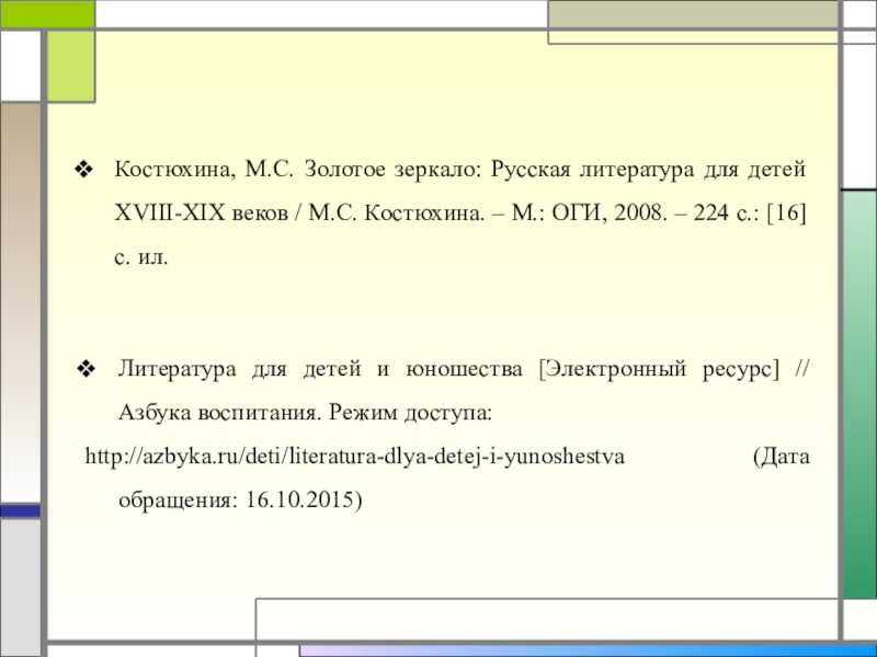 http://azbyka.ru/deti/literatura-dlya-detej-i-yunoshestva (Дата обращения: 16.10.2015)
