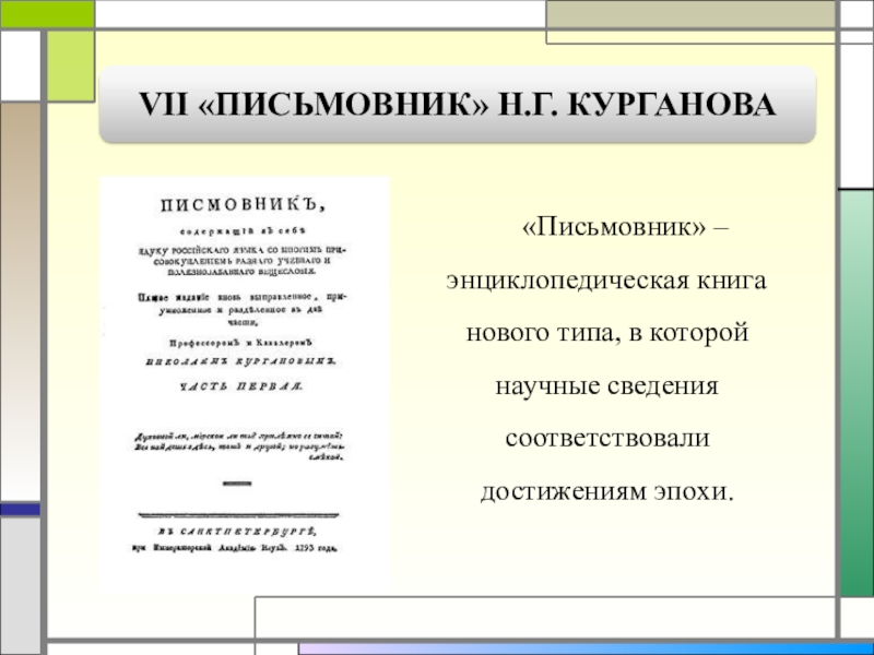 VII «ПИСЬМОВНИК» Н.Г. КУРГАНОВА