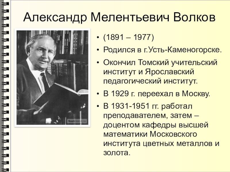 В 1931-1951 гг. работал преподавателем, затем – доцентом кафедры высшей математики Московского института цветных металлов и золота.