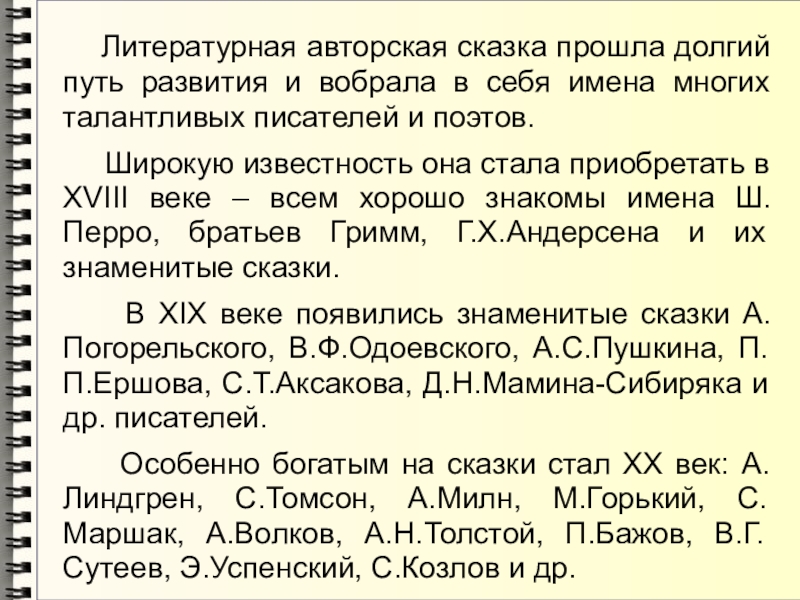Слайд 2 Литературная авторская сказка прошла долгий путь развития и вобрала