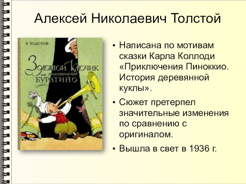 Написана по мотивам сказки Карла Коллоди «Приключения Пиноккио. История