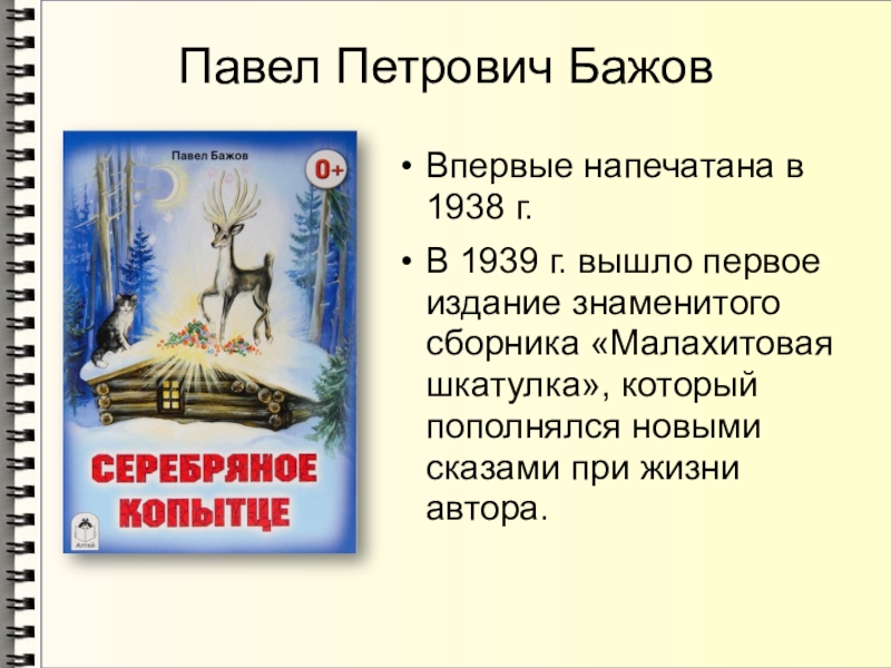издание знаменитого сборника «Малахитовая шкатулка», который пополнялся новыми сказами при жизни автора.