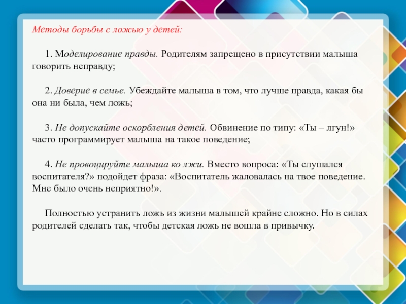 Слайд 3 Первопричиной детской лжи является взрослый, который задаёт