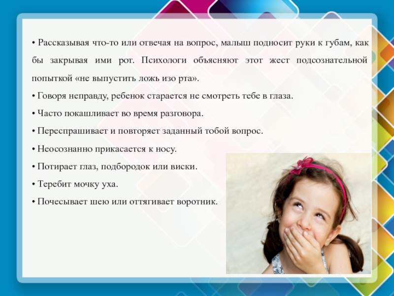 • Говоря неправду, ребенок старается не смотреть тебе в глаза.