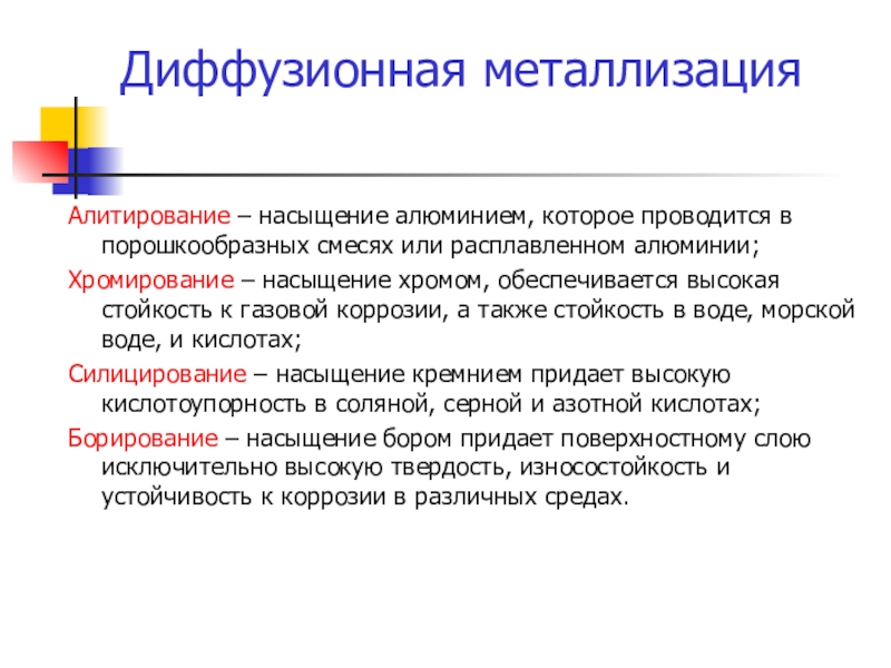 Диффузии, т.е проникновения насыщающего элемента в глубь металла