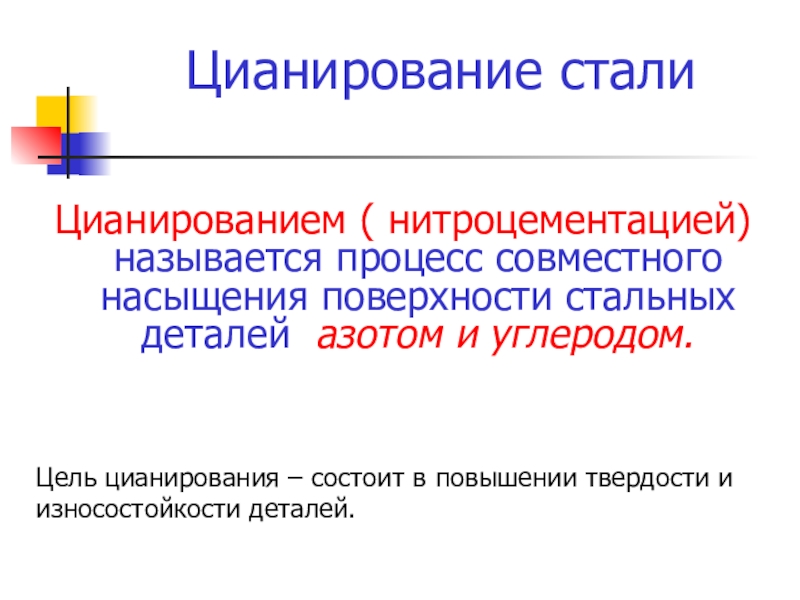 Цель цианирования – состоит в повышении твердости и износостойкости деталей.