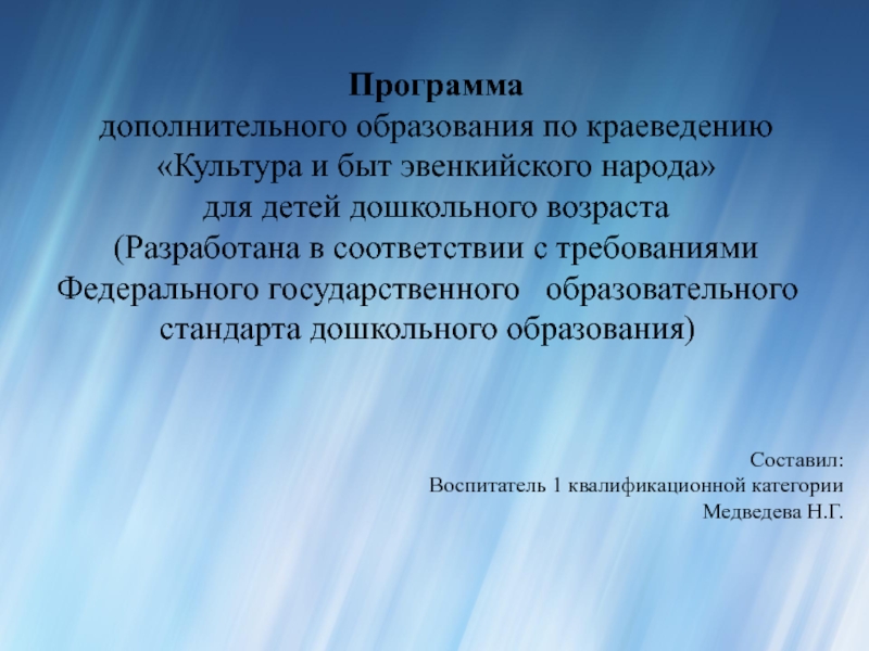 (Разработана в соответствии с требованиями Федерального государственного образовательного стандарта дошкольного образования)