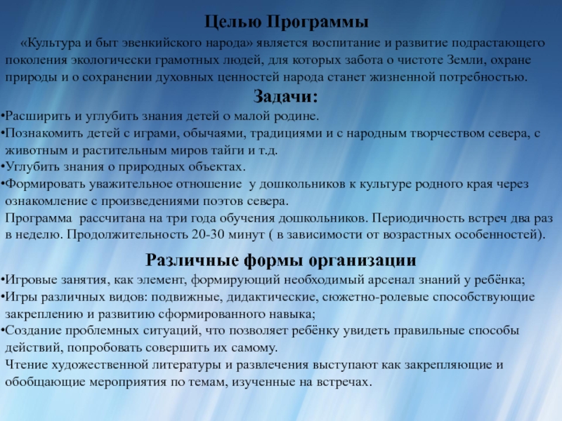 Чтение художественной литературы и развлечения выступают как закрепляющие и обобщающие мероприятия по темам, изученные на встречах.