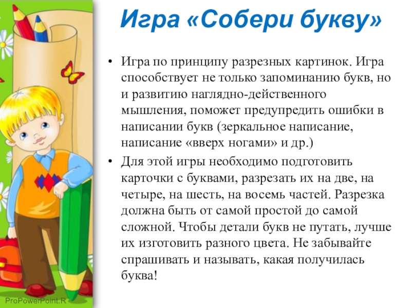 Слайд 7Игра «Собери букву»