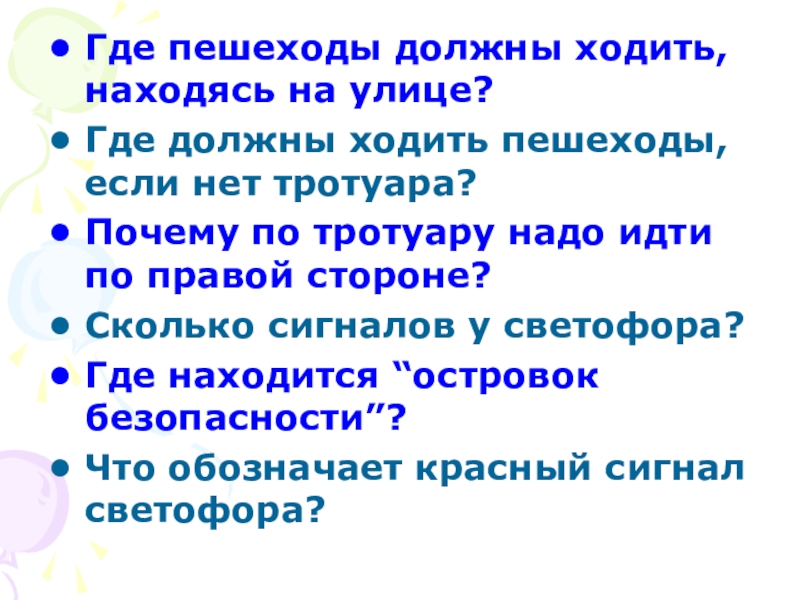 Где пешеходы должны ходить, находясь на улице? Где должны ходить пешеходы, если нет тротуара? Почему по тротуару