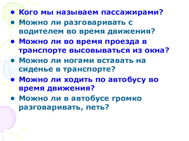 Кого мы называем пассажирами? Можно ли разговаривать с водителем во время движения? Можно ли во время проезда