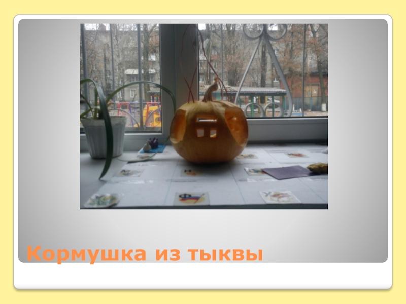Слайд 6Кормушка из тыквы