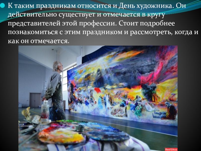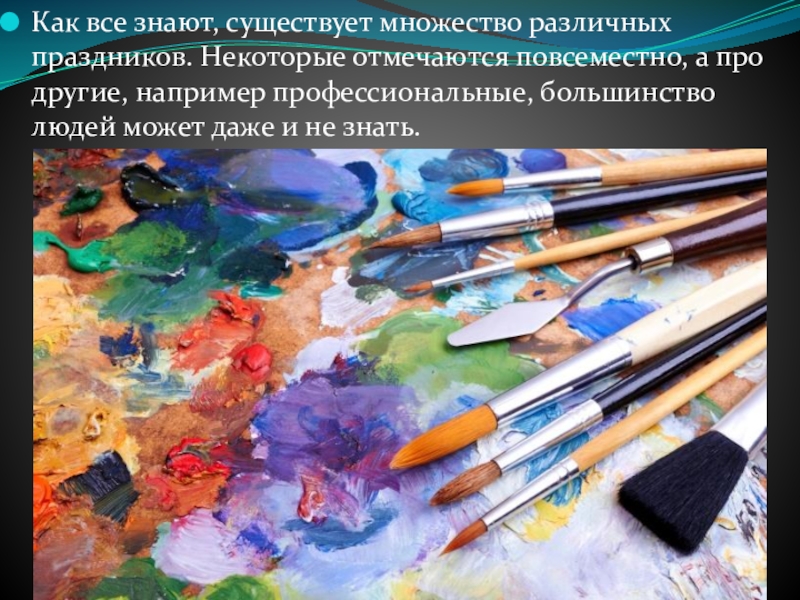 Слайд 3К таким праздникам относится и День художника. Он действительно существует и