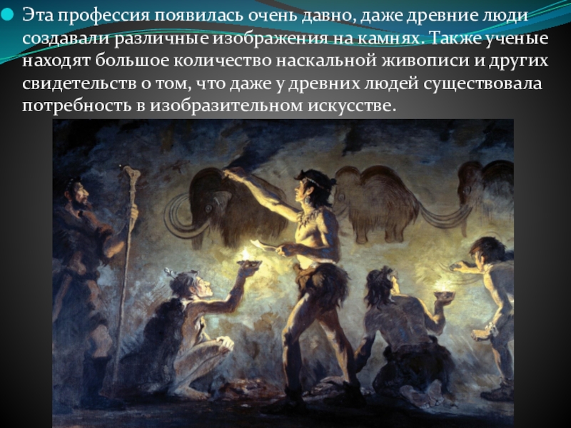 Слайд 7Эта профессия появилась очень давно, даже древние люди создавали различные изображения
