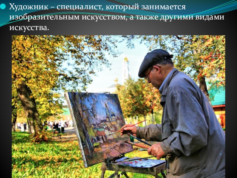 Художник – специалист, который занимается изобразительным искусством, а также другими видами искусства.