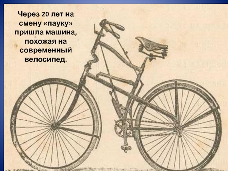 Через 20 лет на смену «пауку» пришла машина, похожая на современный велосипед.