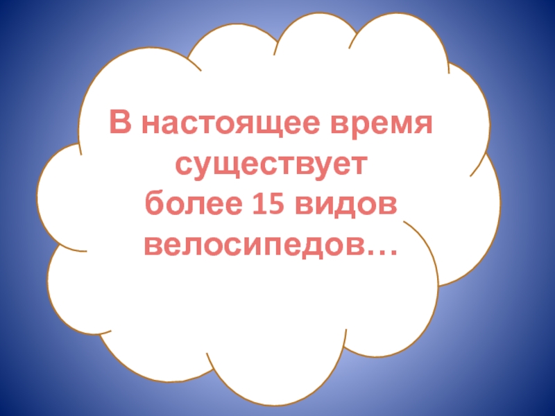 В настоящее время существует более 15 видов велосипедов…