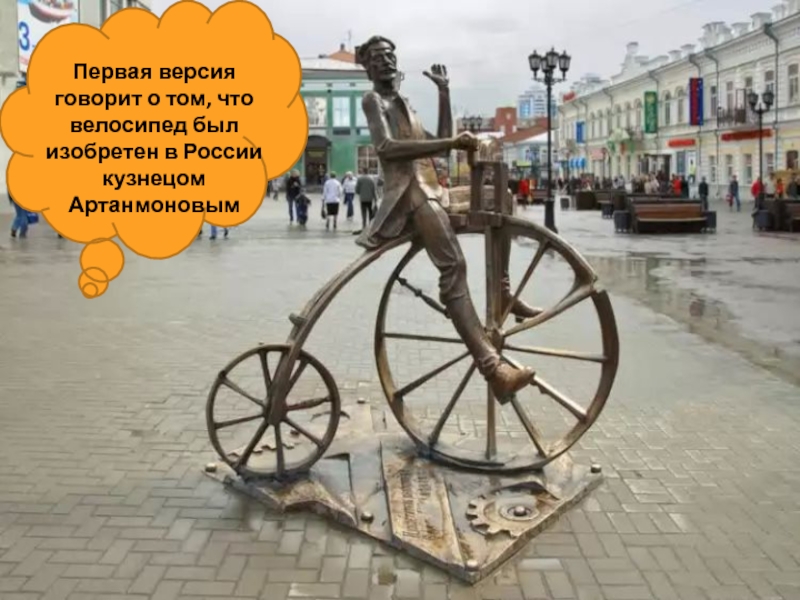 Слайд 7Первая версия говорит о том, что велосипед был изобретен в России