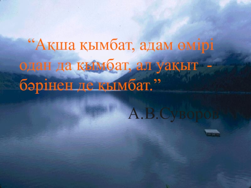 Слайд 14 “Ақша қымбат, адам өмірі одан да қымбат, ал уақыт -