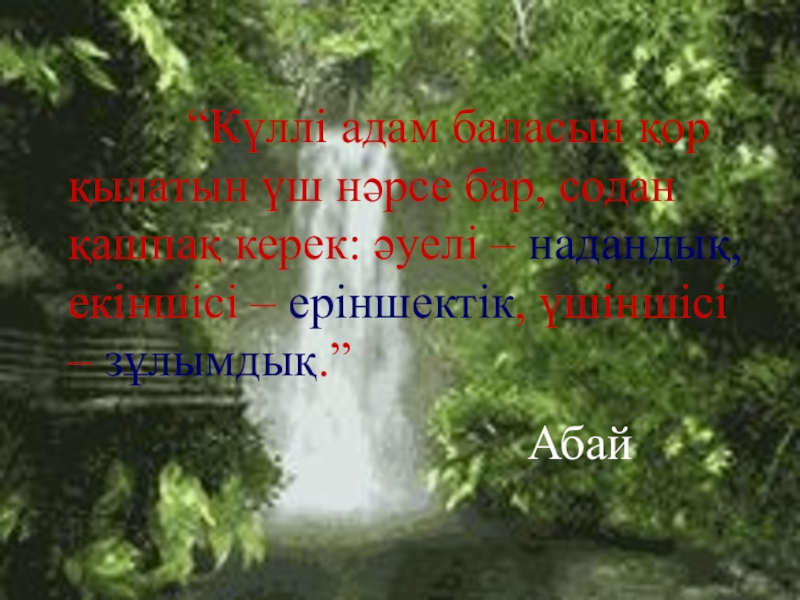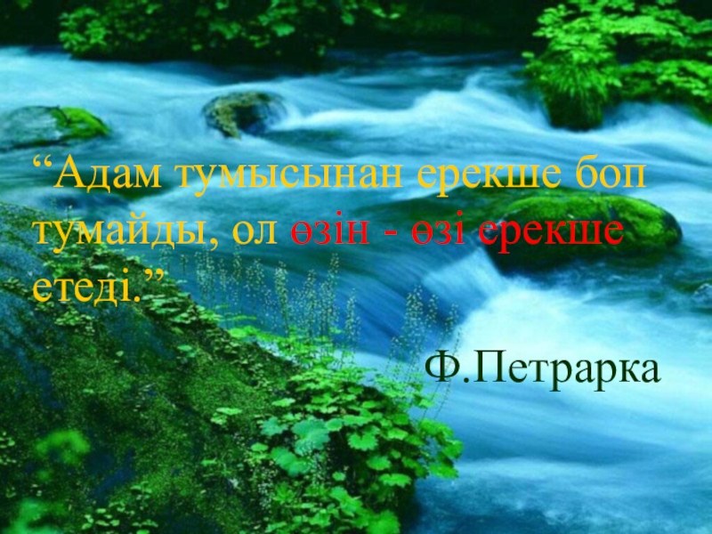 Слайд 13“Адам тумысынан ерекше боп тумайды, ол өзін - өзі ерекше етеді.”