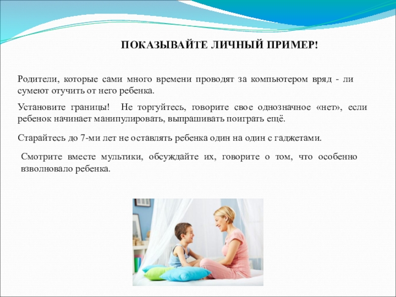 Старайтесь до 7-ми лет не оставлять ребенка один на один с гаджетами.