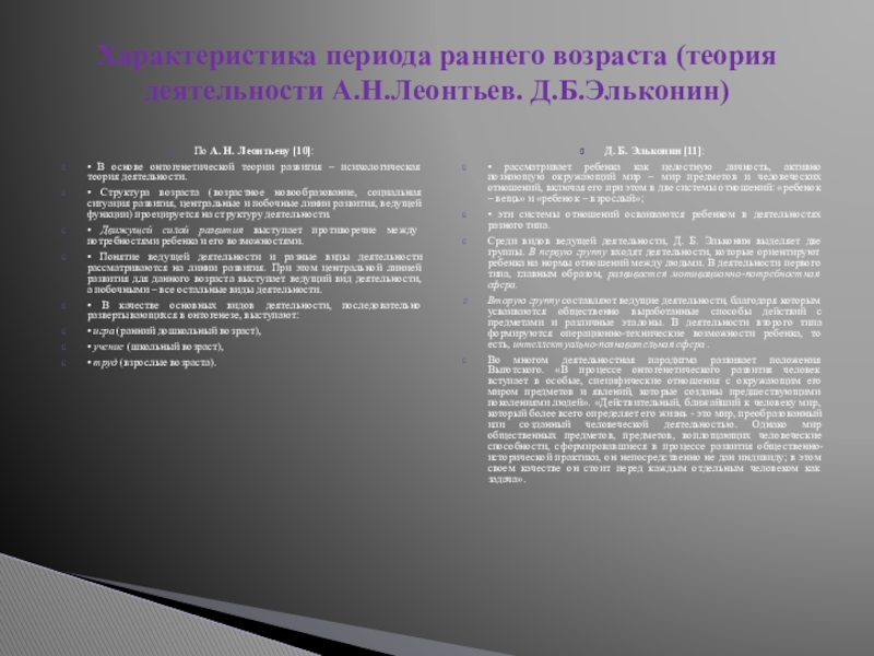 Характеристика периода раннего возраста (теория деятельности А.Н.Леонтьев. Д.Б.Эльконин)
