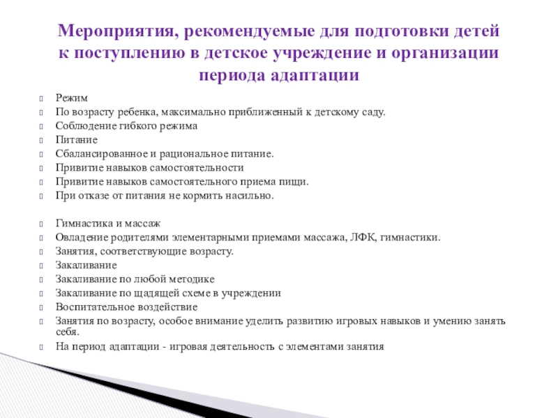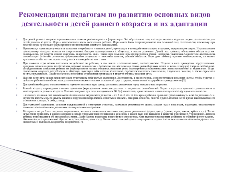 Рекомендации педагогам по развитию основных видов деятельности детей раннего возраста и их адаптации