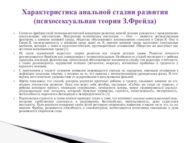 Характеристика анальной стадии развития (психосексуальная теория З.Фрейда)