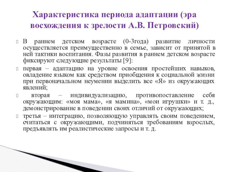 Характеристика периода адаптации (эра восхождения к зрелости А.В. Петровский)
