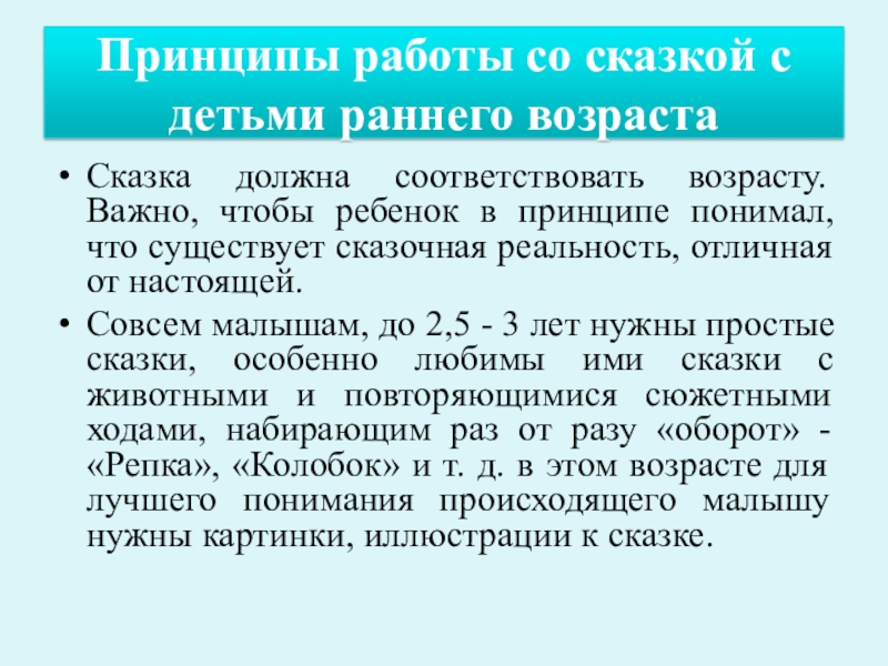 Слайд 2Принципы работы со сказкой с детьми раннего возраста