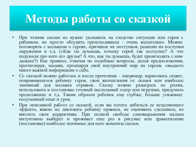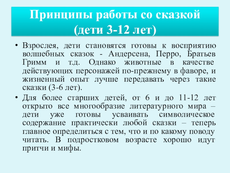 Слайд 3Принципы работы со сказкой (дети 3-12 лет)
