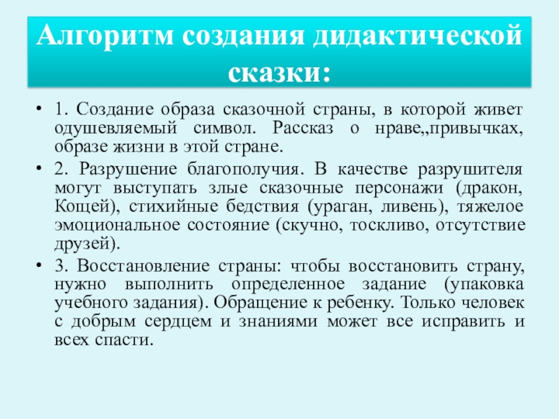 Алгоритм создания дидактической сказки:
