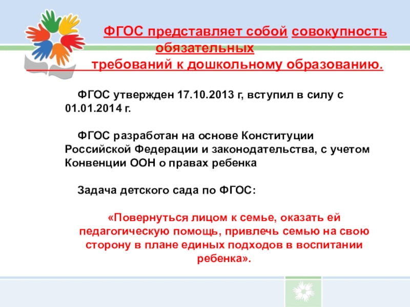 требований к дошкольному образованию.