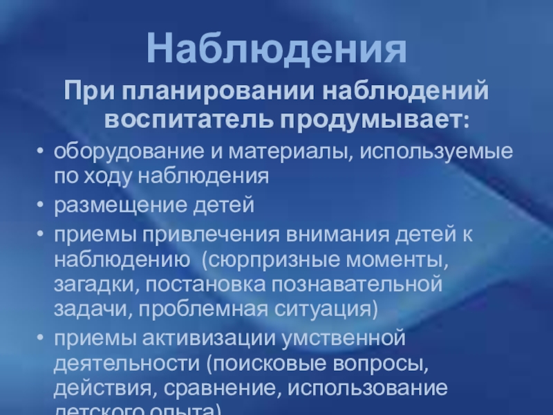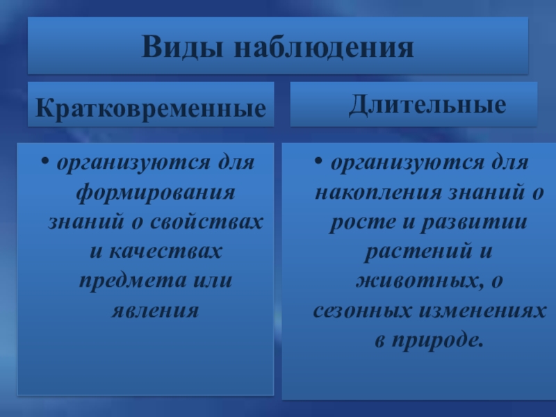 организуются для накопления знаний о росте и развитии растений и животных, о сезонных изменениях в природе.