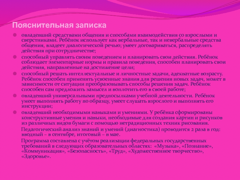 Слайд 8Пояснительная записка
