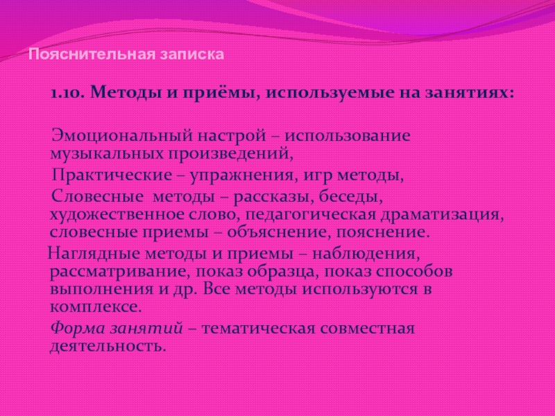1.10. Методы и приёмы, используемые на занятиях: